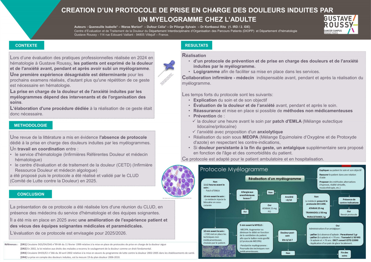 Création d'un protocole pour la prise en charge des douleurs induites lors d'un myélogramme chez l'adulte (P7)