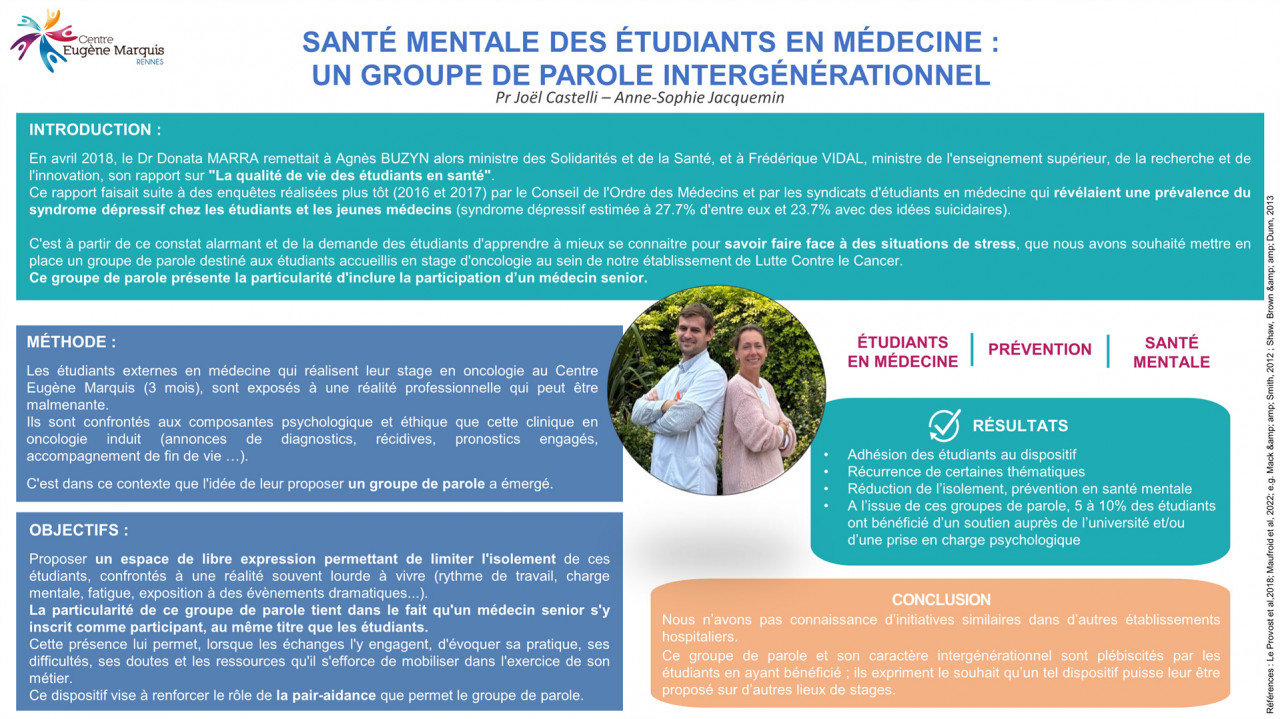 Prévention de la santé des étudiants en médecine: un groupe de parole intergénérationnel. (P19)
