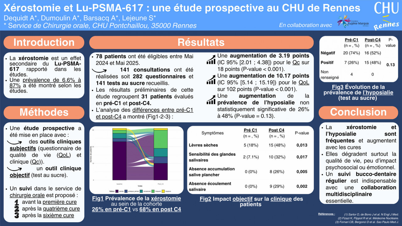 Etude EPOX : Évaluation de la xérostomie induite par le Lu PSMA-617 dans le cadre de cancers de la prostate métastatiques résistant à la castration : une étude prospective observationnelle au CHU de Rennes (P46)