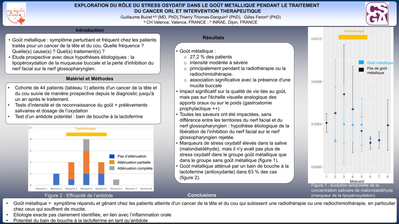 Exploration du rôle du stress oxydatif dans le goût métallique pendant le traitement du cancer ORL et intervention thérapeutique (P41)